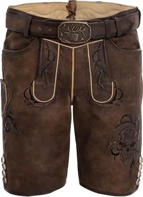Herren Trachtenhose Lederhose Kurzhose mit Gürtel Ziegenvelour Stickerei /50