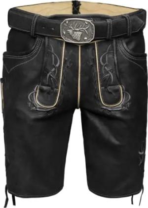 Lederhose Nercel | kurz mit Gürtel | hochwertiges Ziegenvelours-Leder | rustikal keder schotter schwarz (DE/NL/SE/PL, Numerisch, 48, Regular, Regular, rustikal keder schotter schwarz)