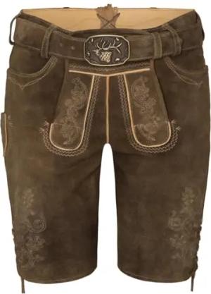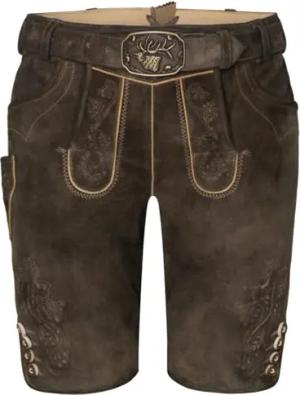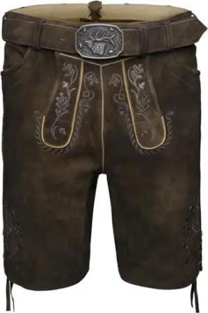 Herren Trachtenhose Lederhose Kurzhose mit Gürtel Ziegenvelour Stickerei, braun/schwarz, 52/L