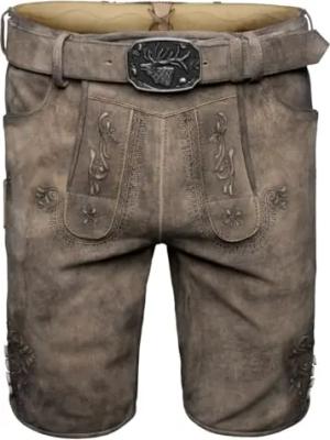 Dynamo Herren Trachtenhose Lederhose Kurzhose mit Gürtel Ziegenvelour 56/2XL