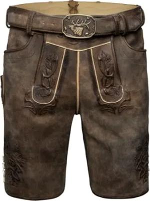 Dragon Herren Trachtenhose Lederhose Kurzhose mit Gürtel Ziegenvelour 52/L