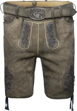 Herren Lederhose kurz mit Gürtel Wurzel mit blaumelierter Stickerei, Wurzel/ST 1519 JEANSMELEIRT, 56