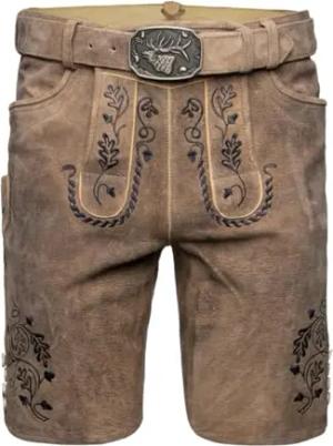 Lederhose Eldorado mit Gürtel | Ledershort Ziegenvelours Herren (DE/NL/SE/PL, Numerisch, 48, Regular, Regular, rustikal keder)