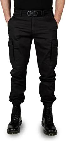 Odin - Herren Cargohose Slim Fit - Stretch Cargo Hose - Schwarze Männer Stoffhose, Schwarz (Black 194008), W36/L32