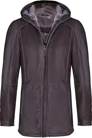 Brauner Schafspelz-echter Lammfell-klassischer Leder-Parka-Mantel mit Kapuze für Herren XS