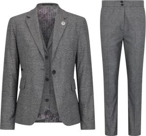 Grauer dreiteiliger Tailored Fit Anzug mit Prince of Wales-Karomuster für Damen