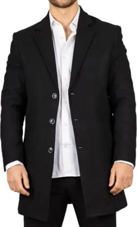 Herren-Wintermantel aus Wollmischung in Schwarz mit Revers und Taschen