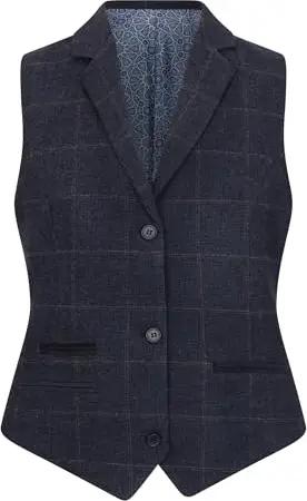 Marineblaue, maßgeschneiderte Tweed-Weste für Damen