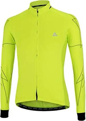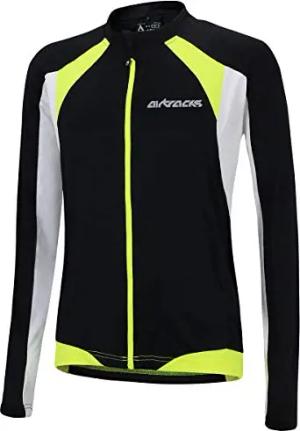 Fahrradtrikot Langarm Pro T - Radtrikot - Jersey - Reißverschluss - Atmungsaktiv - Schnelltrocknend - Reflektoren (neon-weiß, L)