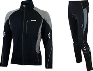 Herren Winter Laufset Pro Team Thermo Laufhose Lang Laufjacke Air Tech II Radlerjacke Radjacke Windstopper Sport Jogginghose Leggins - schwarz-grau - L