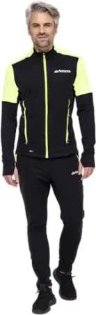 Herren Winter Laufset Pro Team Thermo Laufhose Lang Laufjacke Air Tech II Radlerjacke Radjacke Windstopper Sport Jogginghose Leggins - schwarz-neon - XXL