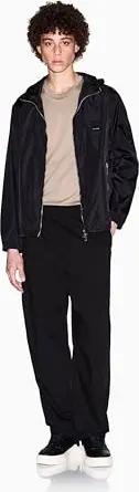 Men's Essential, Removable Hood loged Drawstring Side Logo Blouson Jacket, Black, XXL
