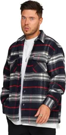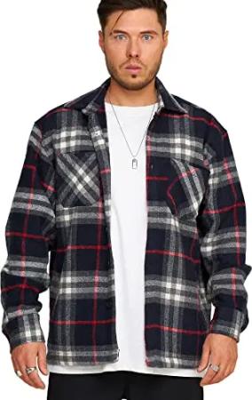 . Herren Oversized Übergangsjacke Hemd-Jacke Flanell Overshirt Jacket 2Y_1110-Navy-Red-M