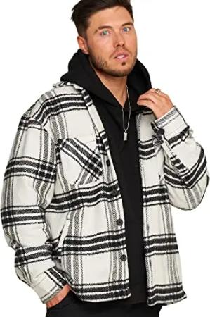 . Herren Oversized Übergangsjacke Hemd-Jacke Flanell Overshirt Jacket 2Y_1110-White-Black-S