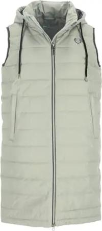 Damen Steppweste lang Nathalia mit abnehmbarer Kapuze - Gesteppte Longweste in Melange-Optik in Schilf Größe 42