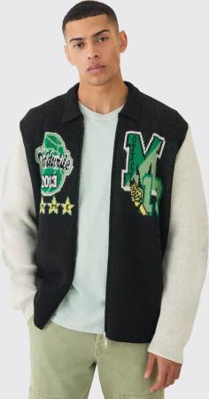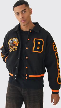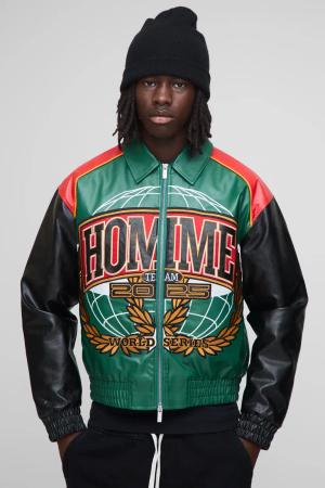 Kastige Bomberjacke mit Homme Applikation und PU-Kragen - Grün - S, Grün
