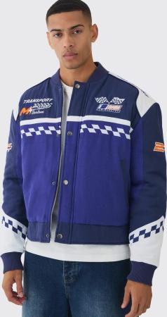 Kastige Oversize Official Twill Moto-Jacke in Blau - XL, Blau