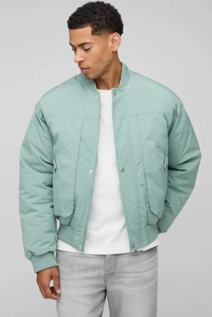 Oversize Nylon Bomberjacke mit Naht-Detail - Grün - S, Grün