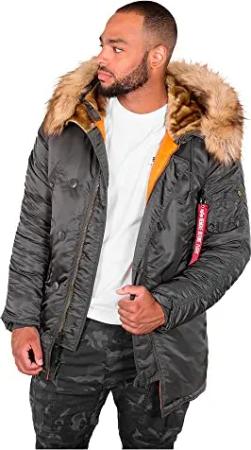 Herren N3B Winterjacke Parkas, Schwarz, Large