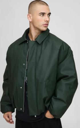 Boxy Fit Rubberised Pu Padded Harrington Jacket - Olive - S, Olive
