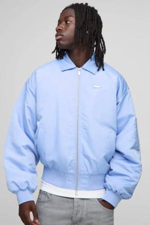 Boxy Fit Satin Look Nylon Collared Bomber Jacket - Blue - M, Blue
