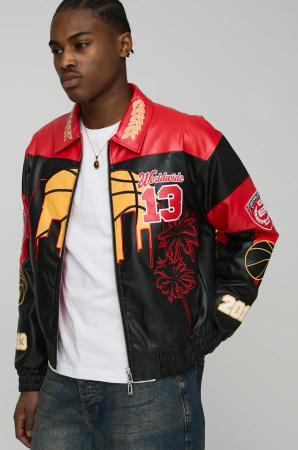 Boxy Fit Homme Applique Pu Collared Bomber Jacket - Forest - L, Forest