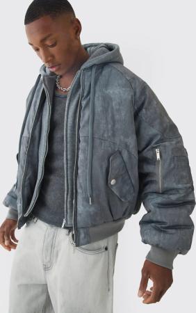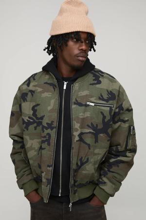 Tall Washed Camo Oversized Hooded Ma1 Bomber Jacket - Multi - L, Multi