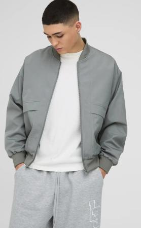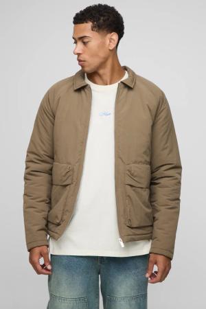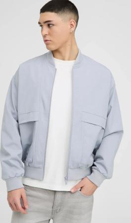 Regular Fit Padded Pocket Bomber Jacket - Grey - L, Grey