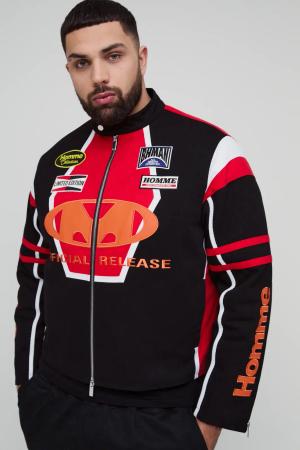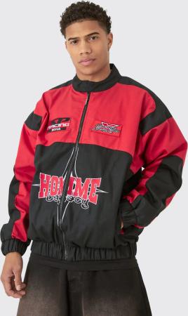 Oversize Homme Twill Moto-Jacke In Rot - Red - L, Red