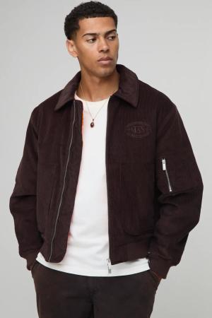 Oversized Fit Cord Collared Contrast Lining Bomber Jacket - Chocolate - M, Chocolate