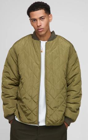 Oversized Diamond Quilted Liner Bomber Jacket - Khaki - M, Khaki