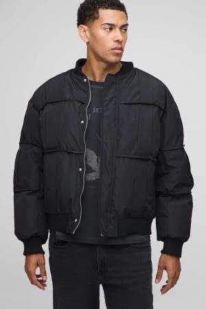 Regular Fit Padded Nylon Panelled Bomber Jacket In Black - S, Black