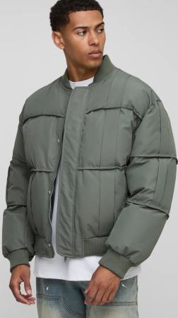 Kastige Oversize Nylon-Bomberjacke Mit Naht-Detail - Olive - L, Olive