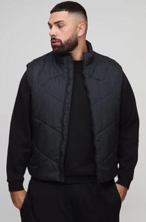 Plus Abstract Quilted Funnel Neck Gilet In Black - 2Xl, Black