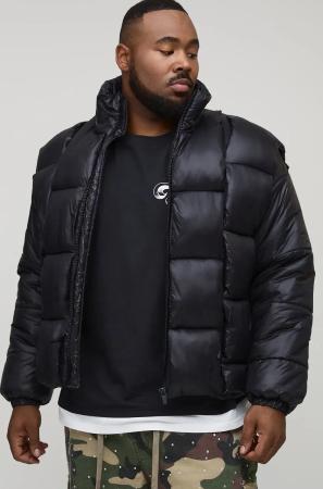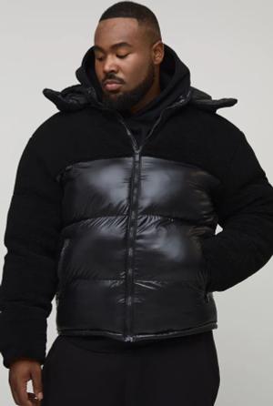 Plus Borg And High Shine Regular Fit Hooded Puffer In Black - 2Xl, Black