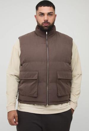 Plus Boxy Faux Suede Funnel Neck Gilet In Chocolate - 4Xl, Chocolate