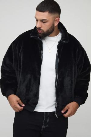 Plus Faux Fur Funnel Neck Regular Fit Bomber Jacket In Black - 3Xl, Black