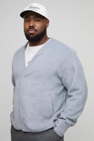 Plus Kragenlose Smarte Jacke In Wolloptik - Grey - Xxl, Grey