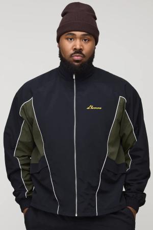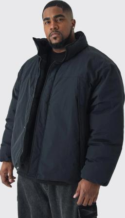Plus Regular Fit Padded Nylon Panelled Bomber Jacket In Black - 2Xl, Black