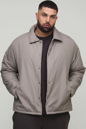 Plus Regular Fit Padded Collared Coach Jacket - Taupe - 2Xl, Taupe