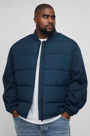 Plus Regular Fit Quilted Scuba Sleeve Puffer - Navy - 2Xl, Navy