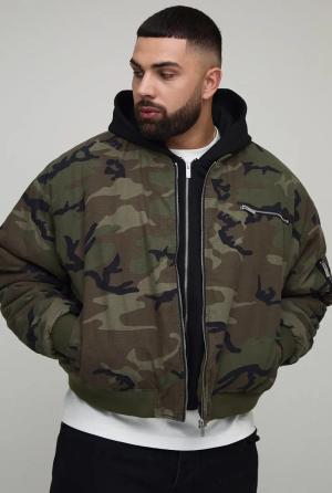 Plus Washed Camo Oversized Hooded Ma1 Bomber Jacket - Multi - 2Xl, Multi