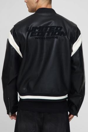 Regular Fit Moto Panel Detail Applique Pu Bomber Jacket - Black - L, Black