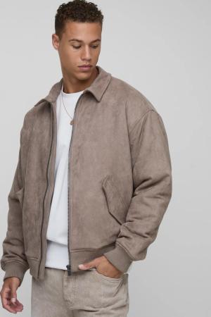 Tall Kastige Oversize Harrington-Jacke Aus Wildleder-Imitat - Taupe - S, Taupe