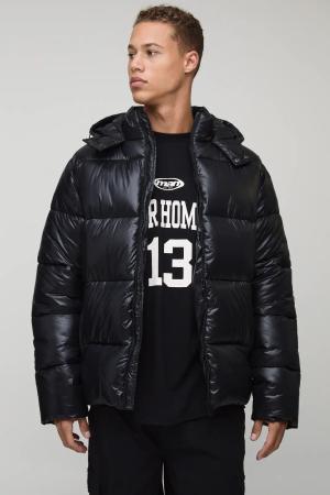 Tall Regular Fit High Shine Puffer Jacket In Black - 2Xl, Black