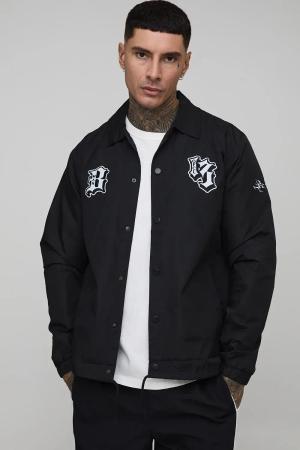 Tall Regular Fit Varsity Badge Collared Coach Jacket - Black - L, Black