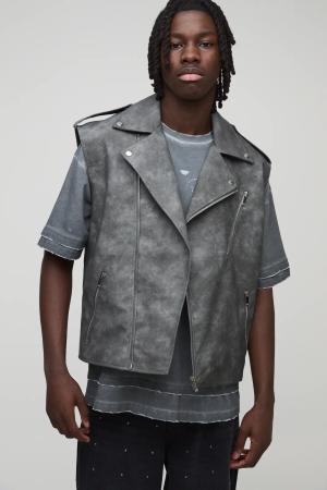 Ärmellose Pu-Bikerjacke - Grey - M, Grey