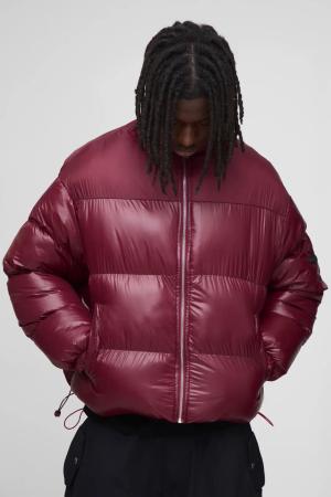 Boxy Fit High Shine Nylon Mix Funnel Neck Puffer Jacket - Burgundy - L, Burgundy