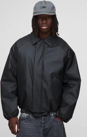 Boxy Fit Rubberised Pu Padded Harrington Jacket - Black - S, Black