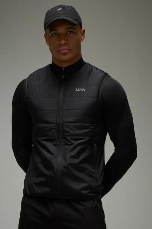 Man Active Lightweight Quilted Zip Through Regular Fit Hoodie - Black - L, Black